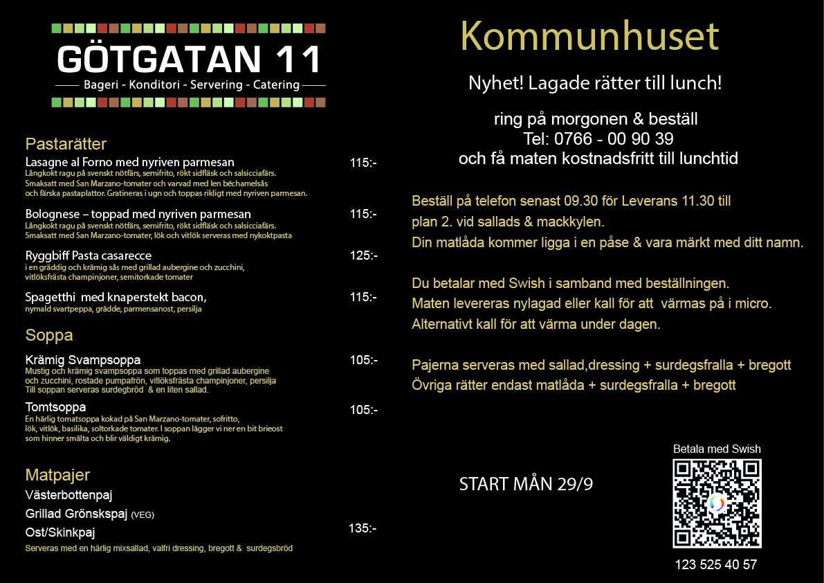 skall leverera all fika, fikabröd, och lättar Catering i form av mackor, sallader, pajer, lättar luncher mm till kommunen vid tex möten och liknande.